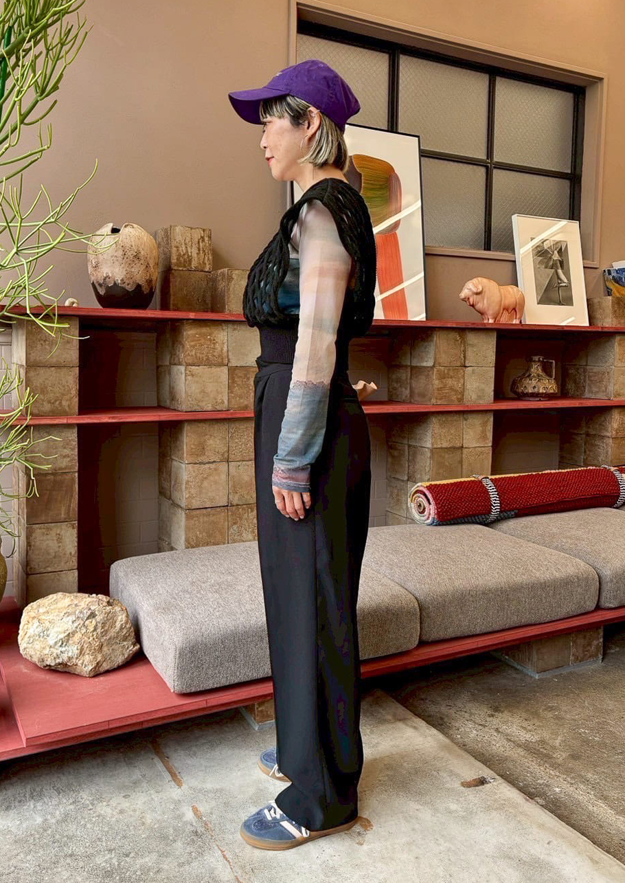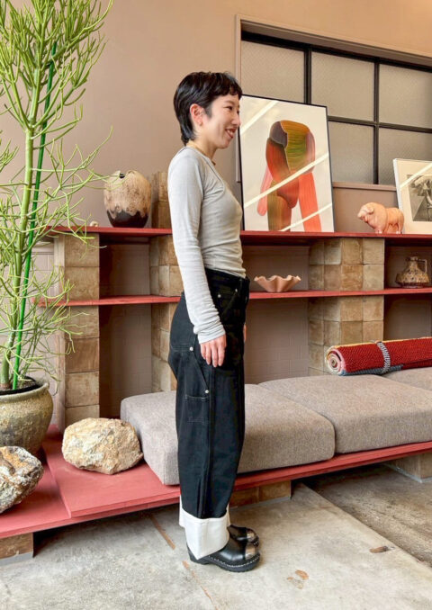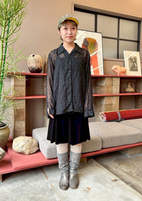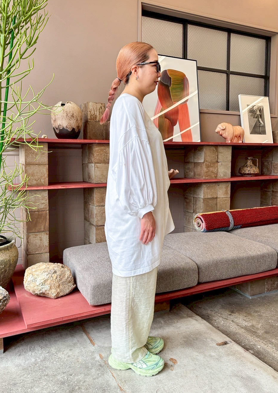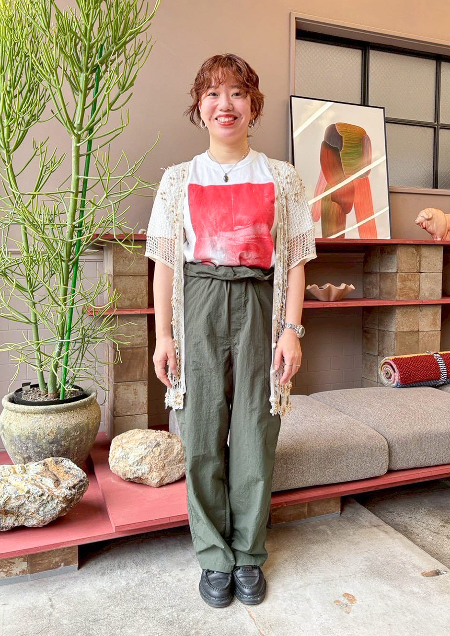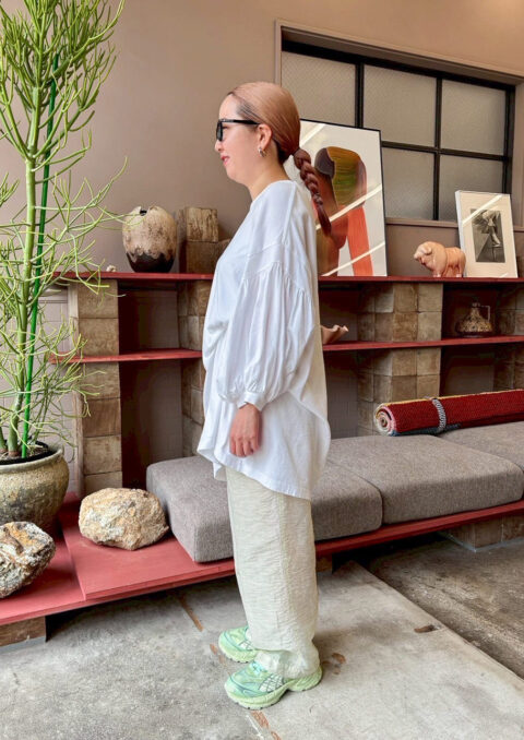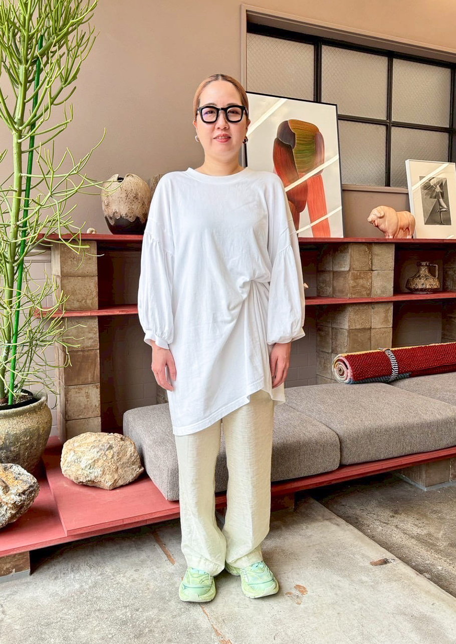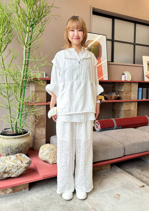 シンプルなものを重ねるのが好き。でも、ただ、シンプルなだけではなくて、どこかに個性を持ったもの、つくった人の思いが感じられるものがいいですね。自分が身につける服は、いつも感覚的に選んでいます。服の力だけに頼るのではなくて、人が袖を通して、滲み出てくるものが大切だと思います。