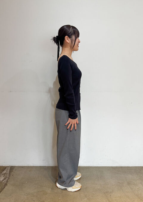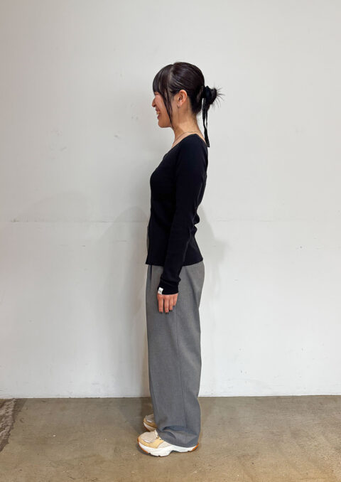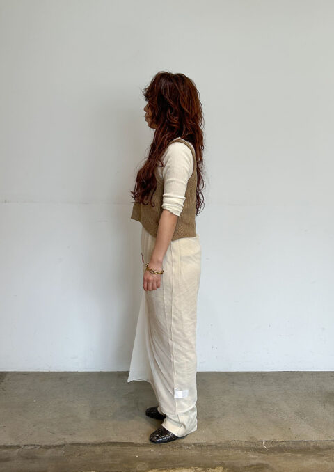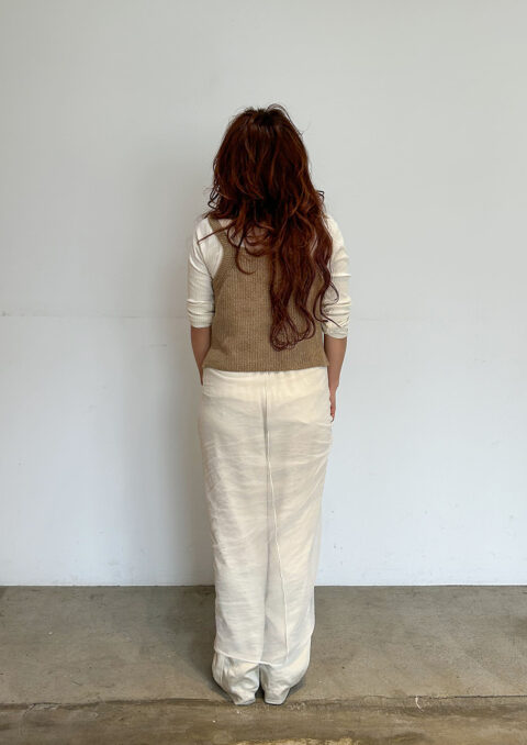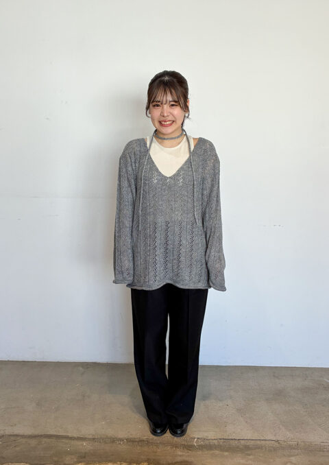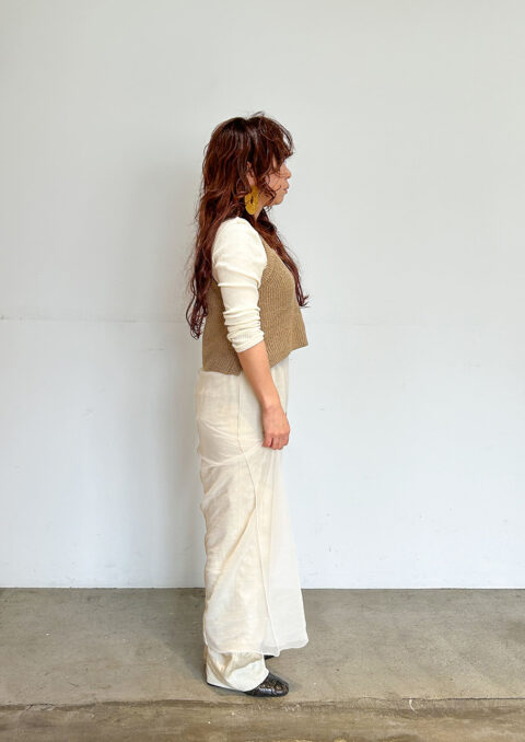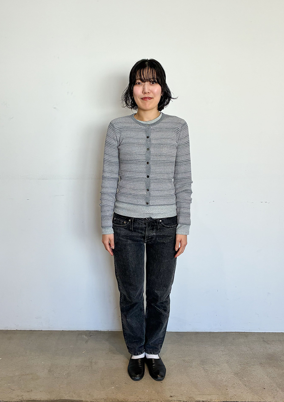 シンプルなものを重ねるのが好き。でも、ただ、シンプルなだけではなくて、どこかに個性を持ったもの、つくった人の思いが感じられるものがいいですね。自分が身につける服は、いつも感覚的に選んでいます。服の力だけに頼るのではなくて、人が袖を通して、滲み出てくるものが大切だと思います。