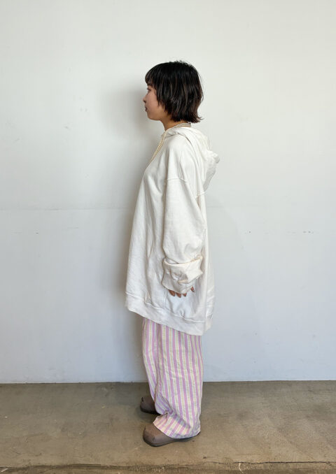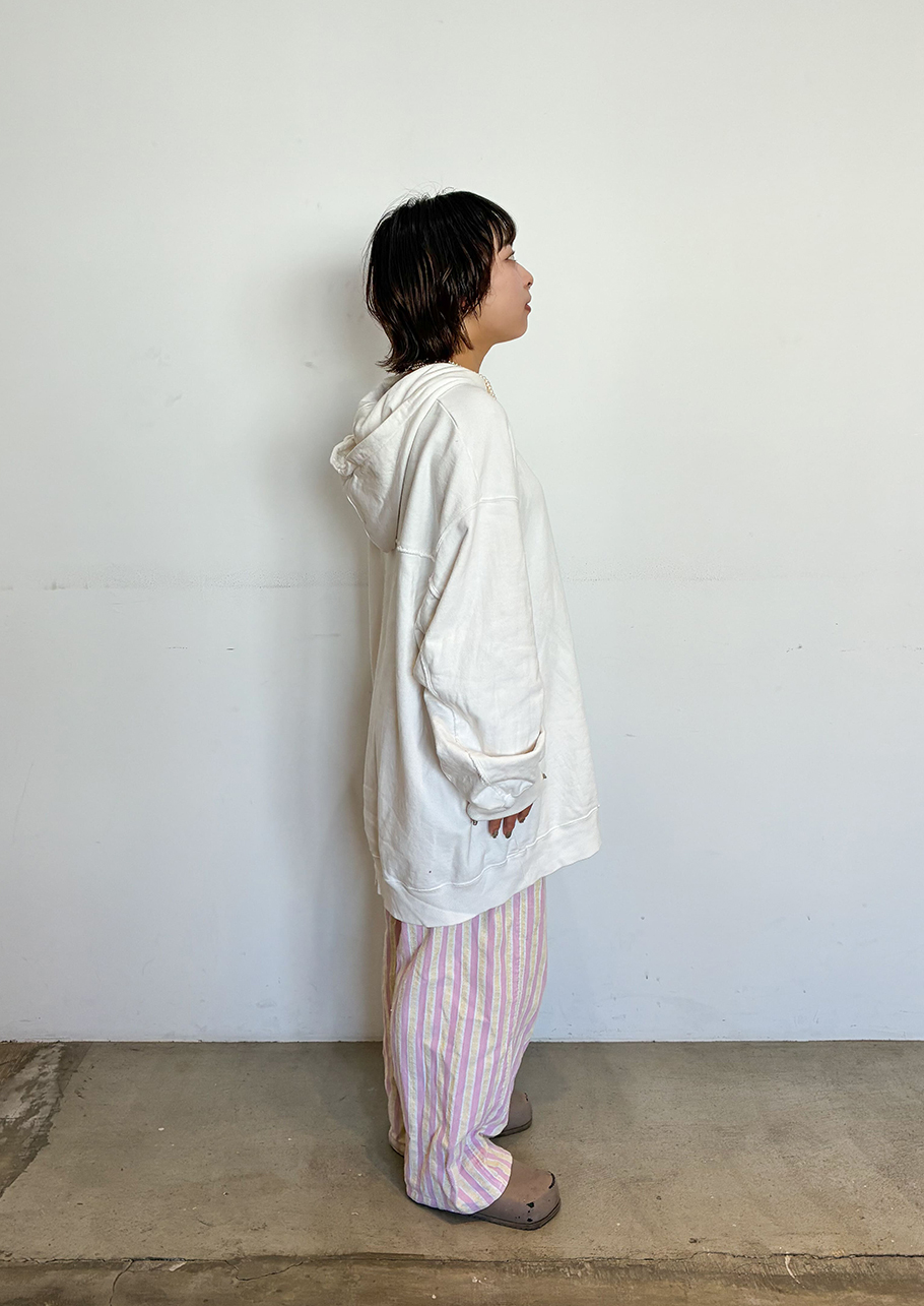 部屋着が好きです。家にいる時のコーディネートをかなり真剣に考えています。Tシャツとかパジャマとかランジェリーとかがそもそも好きで。このTシャツに合わせるなら、このパンツかも、この靴下かも、とか。なんとなくキャラ設定みたいなことを考えるんですよ。服装で仕草が変わります。不思議なもので、ワンピース着て外を歩くと、女の子らしい動きになったりとか。